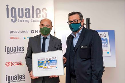 Ángel García Frontelo, subdirector general de la Unidad Administradora del Fondo Social Europeo, y José Luis Martínez Donoso, director general de Fundación ONCE, fueron los encargados de presentar este cupón en un acto celebrado este miércoles en la sede de Fundación ONCE en Madrid.