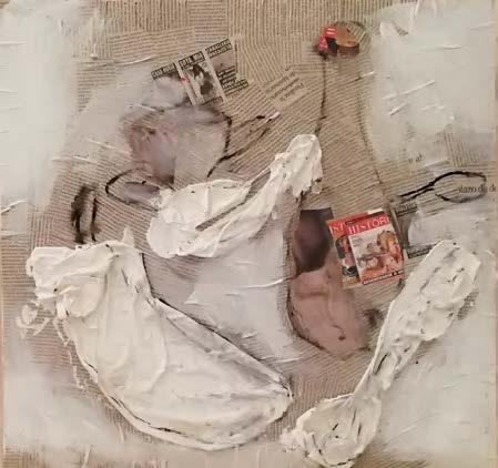 ‘Evolucionismo’ recoge collages como ‘Birds’, ‘Bodegón con trapo’ o ‘Extraño silencio’ e infografías como ‘Sad day’, ‘Sonido perfecto’ o ‘Tres peatones’, entre otras.
