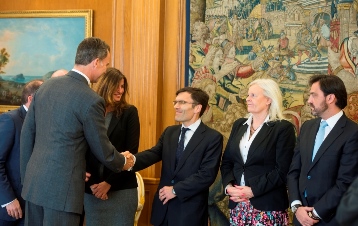 El rey Felipe VI recibió este lunes a la Federación Nacional de Asociaciones de Trabajadores Autónomos (ATA) y a las entidades galardonadas en la XIV edición de sus premios, entre las que se encuentra Fundación ONCE, Premio Autónomo del Año 2015.
