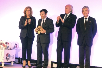 Alberto Durán, vicepresidente ejecutivo de Fundación ONCE, recogió de manos de la ministra de Empleo y Seguridad Social, Fátima Báñez, el premio al Compromiso Social en la categoría de Entidad Social