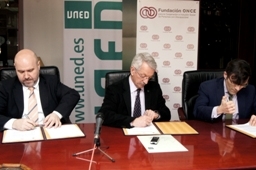 Fundación ONCE, el Comité Español de Representantes de Personas con Discapacidad (CERMI) y la UNED han firmado este martes la ampliación de un convenio marco de colaboración para trabajar en distintos ámbitos de la accesibilidad, la adaptación y la inserción laboral de estudiantes y titulados universitarios con discapacidad.